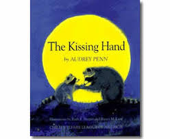 In the story the mother raccoon places a kiss in the center of her son's hand and calls it, the "kissing hand," and whenever her son needs to feel his mother's love, he could hold his kissing hand to his face and know he is loved.